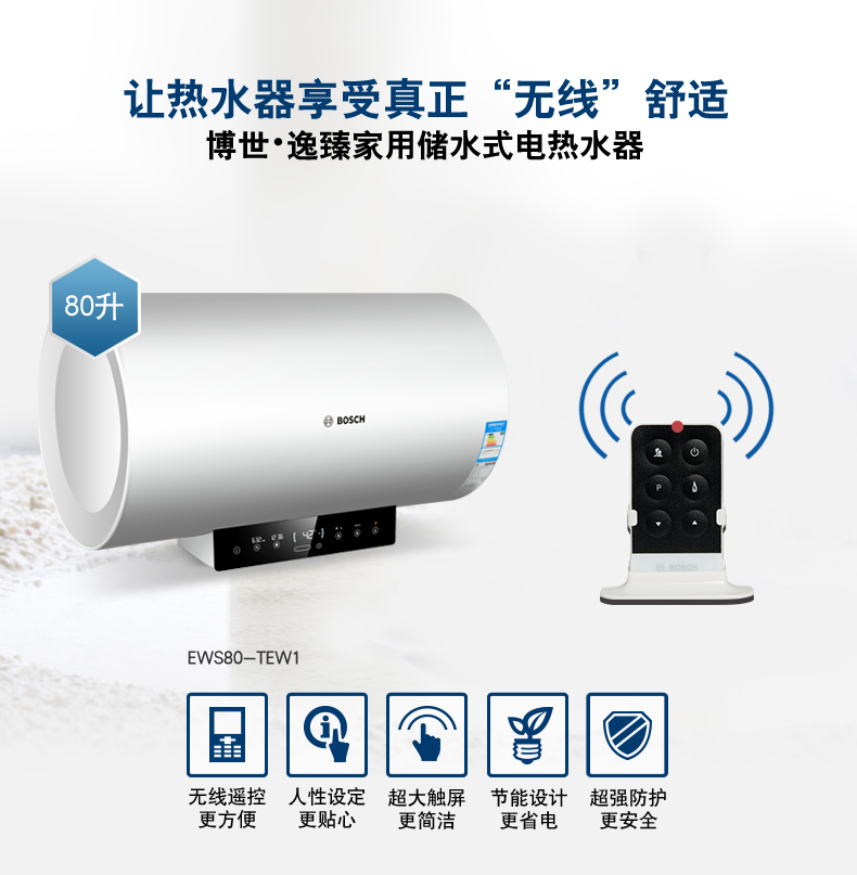 電子式控制,觸摸按鍵。無(wú)線遙控器??蛇x容積為50L/60L/80L/100L。
